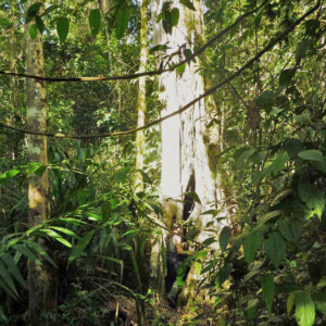 Natürlich nicht das Equipment-Malheur, sondern die Tatsache, dass ich am anderen Ende der Welt unter diesem gewaltigen grünen Blätterdach stehe und um mich herum das schiere Leben krabbelt, zirpt, quakt und summt. Zwischen den undurchdringlich wirkenden Büschen und Bäumen ragen gewaltige Feigenbäume bis zu 40 Meter empor, bunte Schmetterlinge umflattern uns, Ameisenstraßen kreuzen den Pfad und ein ganz leichter Nieselregen legt sich wie Nebel auf die Haut.